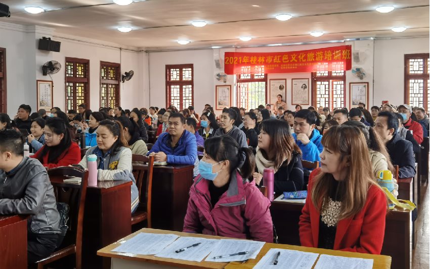 3月23日至3月25日,由桂林市文化广电和旅游局、桂林红军长征湘江战役文化保护传承中心主办,桂林市红色旅游协会、桂林市导游协会承办的2021年桂林市红色文化旅游培训班,在广西师范大学王城校区举办。 此次培训有130名导游参加,以“讲好红色故事,献礼建党百年”为主题,邀请党史研究、红色文化和旅游专家等,围绕党中央关于红色旅游发展的重要指示精神,进行了中国共产党党史、广西地方党史及其在中央党史中的地位、湘江战役的回顾、抗日战争时期的桂林城和桂林...