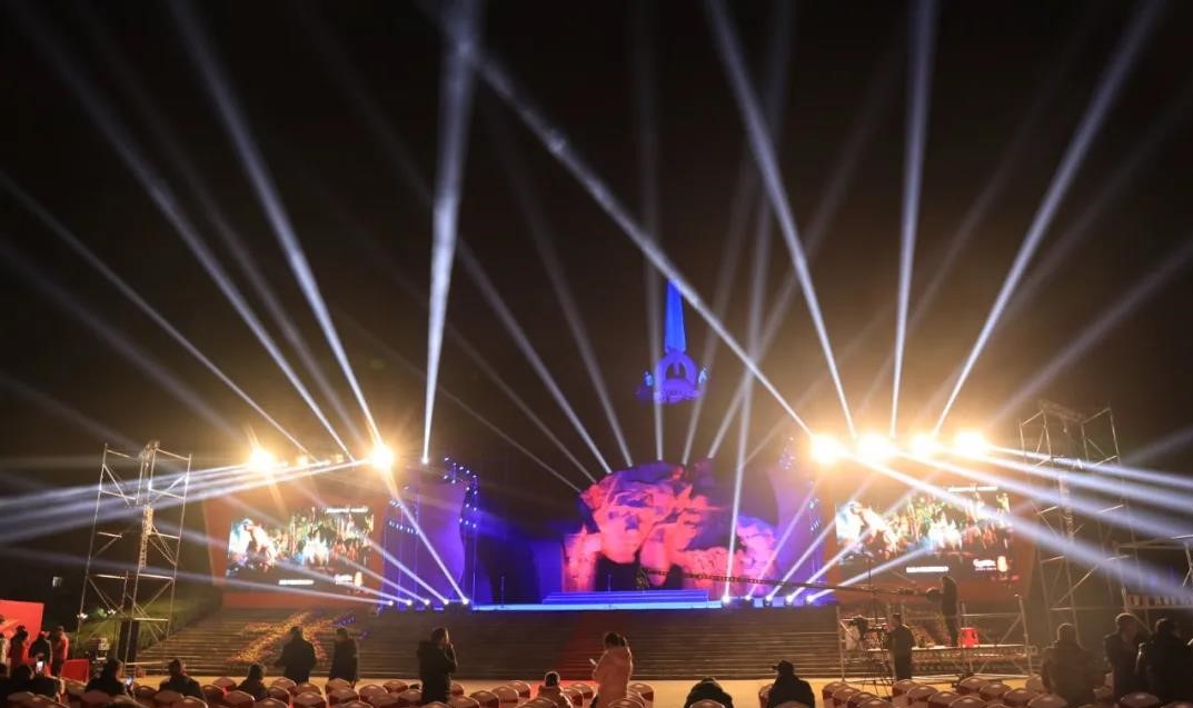 湘江战役纪念塔被灯光打亮