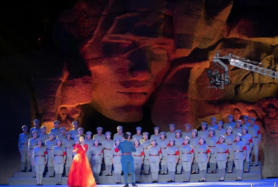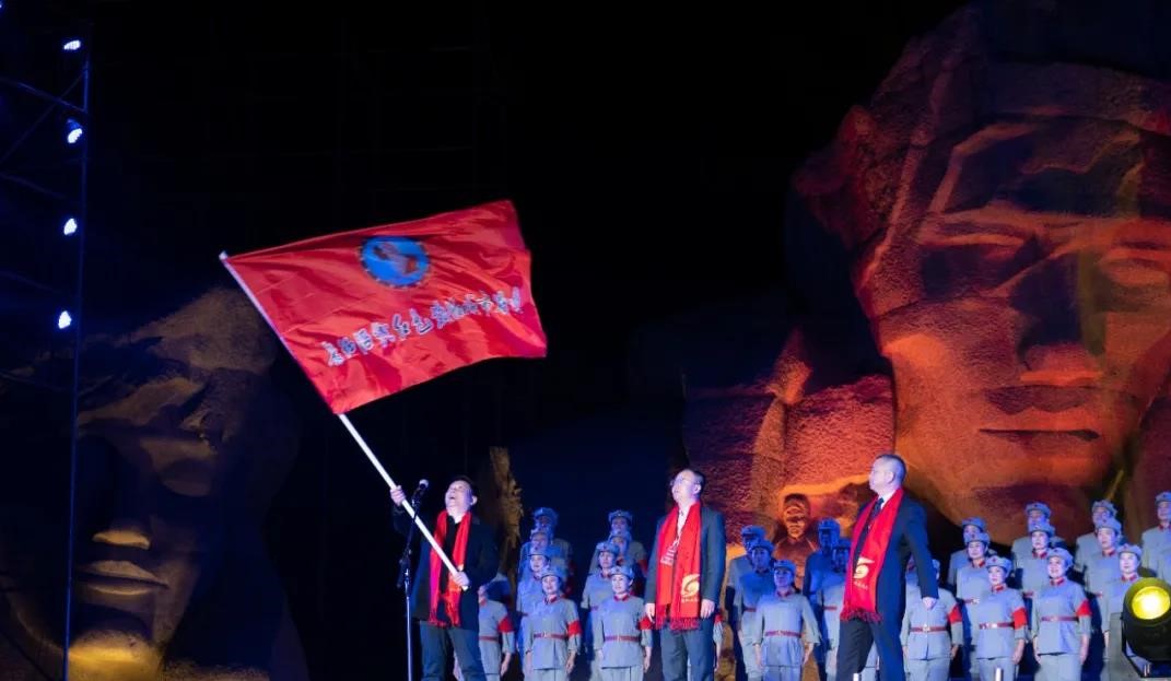 在《红旗颂》雄浑的音乐衬托下