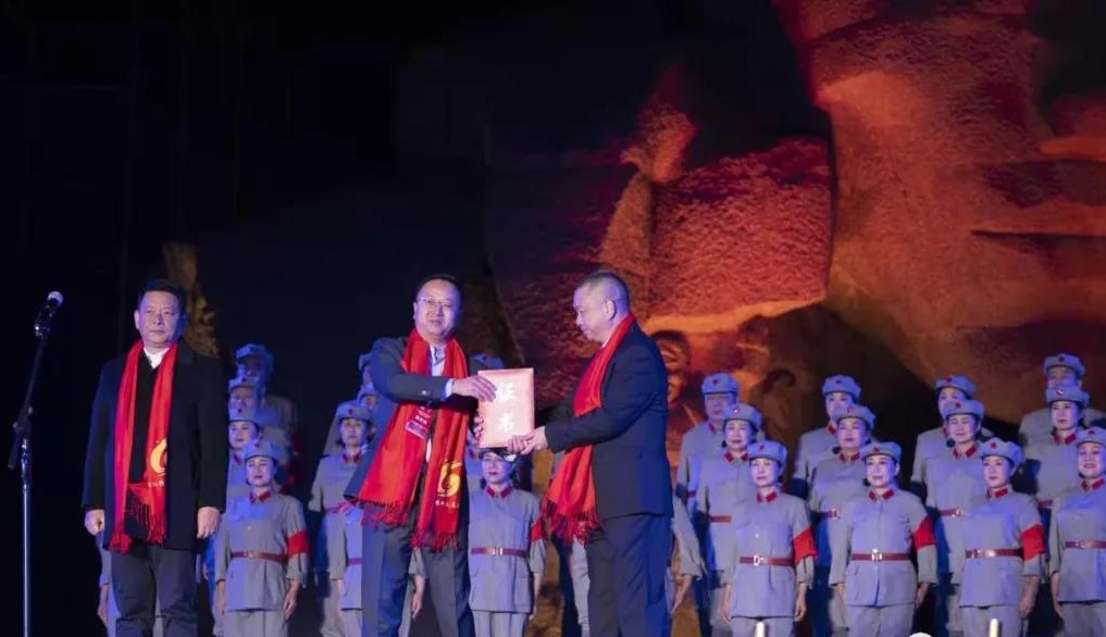 交接了长征沿线红色旅游城市联盟大会会旗