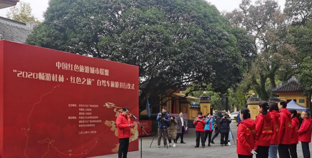2020年12月9日上午9点,由桂林市文化广电和旅游局、秀峰区人民政府、灌阳县人民政府主办,秀峰区文化体育和旅游局、灌阳县文化广电体育和旅游局以及桂林市红色旅游协会承办的“中国红色旅游城市联盟 2020畅游桂林·红色之旅自驾车旅游开行仪式”在桂林靖江王城景区举行。