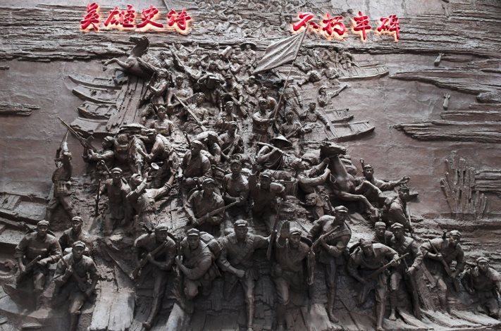走进广西全州的红军长征湘江战役纪念馆,巨幅浮雕迎面矗立:背着大刀、握着枪支、牵着马匹的红军将士奋勇向前,脚下是用船只搭成的浮桥,江水之中炮弹炸出阵阵水柱。