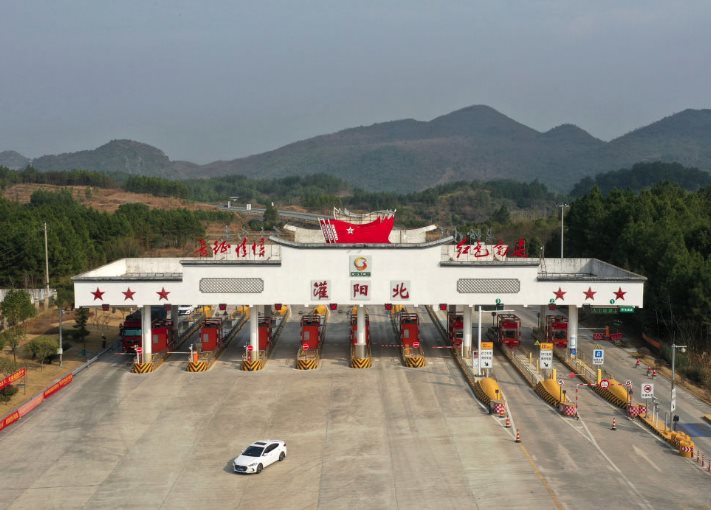 ▲2月2日拍摄的广西灌阳北高速公路收费站。(无人机照片,新华社记者陆波岸 摄)