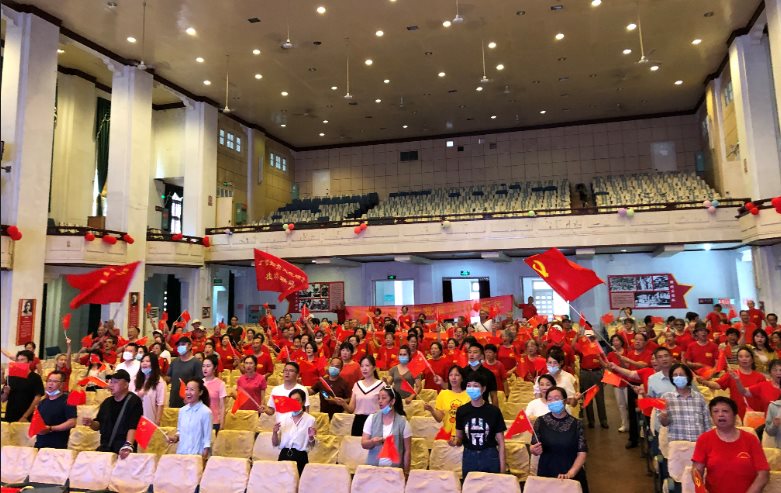 报告会开场,举行放歌颂党快闪活动,全场高歌《我和我的祖国》、《没有共产党就没有新中国》,全场气氛激昂热烈。