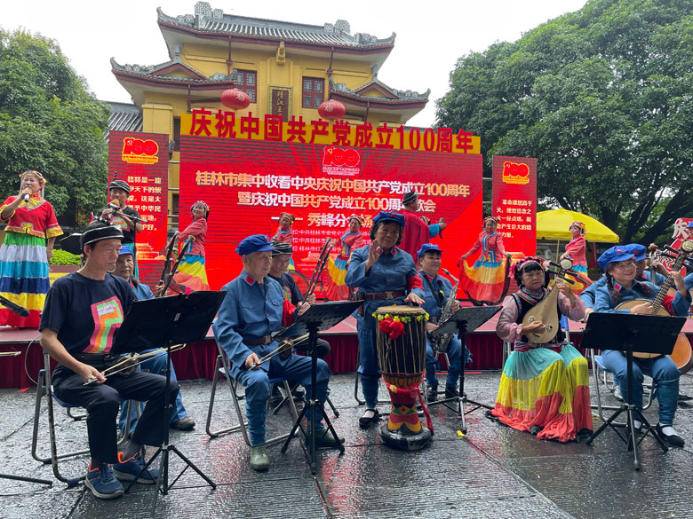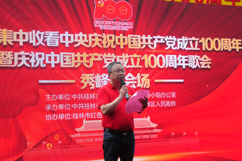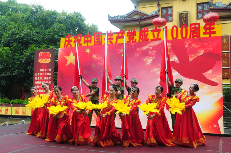 2021年7月1日,由中共桂林市委党史学习教育领导小组办公室主办、桂林市秀峰区委区政府承办、桂林市红色旅游协会协办的“庆祝中国共产党成立100周年歌会”在秀峰区独秀峰·王城景区隆重举行。