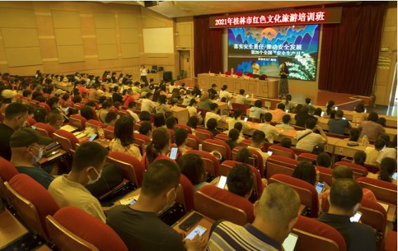 讲好红色故事,献礼建党百年。 6月8日上午,桂林市第二期红色文化旅游培训班在桂林山水大酒店开班,桂林市导游协会400多名会员导游报名参加为期三天的红色文化旅游培训。 ▲参训人员提前20分到场 桂林市文化广电和旅游局党组成员、副局长李汉春到班作培训动员。培训班由桂林市导游协会和桂林市红色旅游协会共同组织。 ▲参加开班仪式的领导 据介绍,这是继今年三月份第一期外语导游转型红色旅游专场培训后的又一期集中培...