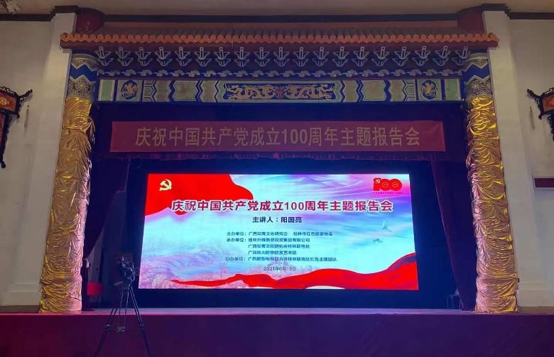 为了庆祝中国共产党成立100周年,由桂林市红色旅游协会、广西知青文化研究会联合主办,桂林升辉旅游景区投资管理有限责任公司、广西知青文化研究会桂林联络处、广西师大附中校友艺术团、广西新型电商联合会桂林联络处红色主播团队协同承办的“庆祝中国共产党成立100周年主题报告会”于2021年6月15日在广西师范大学王城校区国学堂举行。 此次报告会受到桂林市红色旅游协会会员单位及红色旅游相关人员和各界朋友的积极支持,并踊跃参与,与会人员达200余人。 ...