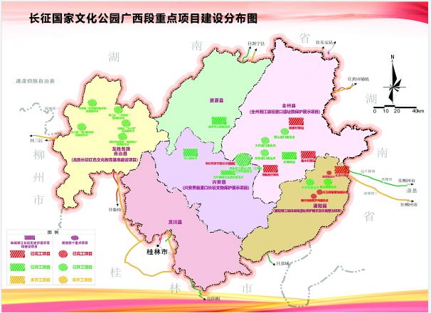 ▲龙胜马堤乡万人界现场教学点长征驿站 ▲灌阳县永安关至北流村沿途红色文化氛围营造 ▲兴安县老山界(龙冲路口)至龙潭江景区路段的红色文化氛围 ▲全州大坪渡口建设点修缮保护情景 “长征国家文化公园”是四大国家文化公园之一,其建设范围涉及红军长征经过的15个省(区、市),将通过一系列的项目建设,生动呈现长征文化的独特创造、价值理念和鲜明特色,进一步彰显革命文化的强大感召...