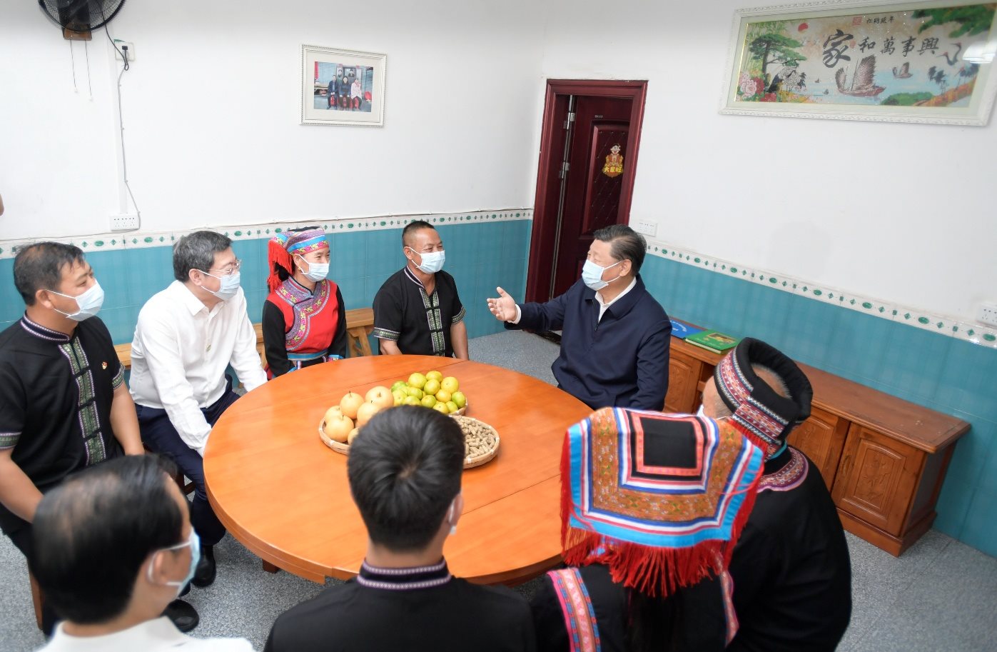 16日下午,在湖南省郴州市沙洲瑶族村考察调研的习近平总书记,走进“半条被子的故事”主人公徐解秀的后人——村民朱小红家中。朱小红告诉总书记,他在景区当讲解员,家里还开了农家乐,已经脱贫,生活越来越好。他连连感慨,共产党从给老百姓被子到给幸福路子,日子今非昔比。习近平强调:“因为有老百姓的支持,我们党才有了光荣历程、辉煌事业。你们家里的变化也说明一个道理,共产党坚持为民本色,说到做到。”随后,他步行来到村子广场,村民们热情欢呼着围拢过来。习近平对乡亲们说,中国共产党人自己有一条棉被也可以分半条给老百姓。建党近百年不忘初心,老百姓把共产党看成是自家的党,是老百姓的党。我今天到这里来,也是受教育。我作为一名共产党员、作为一名共产党的负责干部,本身也要不断受教育、不断受洗礼、不断受启示,履行好我的职责,同14亿中国人民在一起、同9000多万党员在一起,把我们国家建设得更好,让我们的老百姓更加开心、更加幸福。
