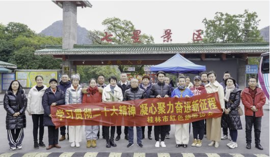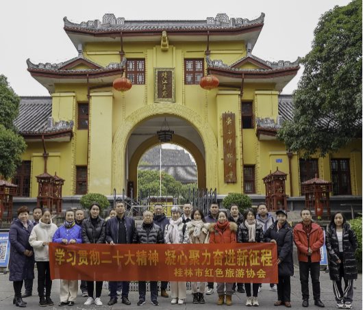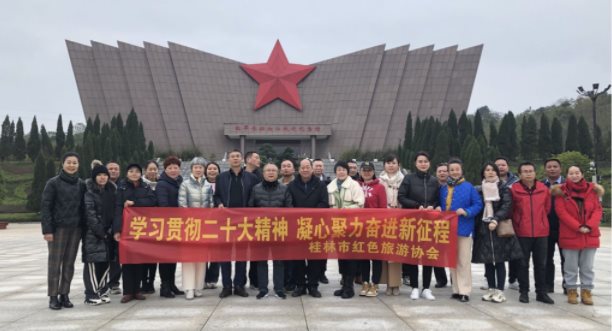 桂林市红色旅游协会于2022年12月6日至7日组织协会部分会员单位负责人在本市及兴安、全州等地开展了红色旅游线路考察;协会还邀请到桂林市委常委、统战部部长蒋育亮为参加本次活动的协会单位负责人宣讲了题为“深入学习贯彻党的二十大精神,为谱写中国式现代化桂林篇章贡献磅礴力量”的演讲报告,深刻阐述了党的二十大报告是马克思主义中国化时代化纲领性文献,是我们党面向未来的伟大政治宣言,是实现中华民族伟大复兴新征程上的行动指南;党的二十大是高举中国特色社会主义伟大旗帜,全面贯彻习近平新时代中国特色社会主义思想,弘扬伟大建党精神,自信自强、守正创新,踔厉奋进、勇毅前行,为全面建设社会主义现代化国家、全面推进中华民族伟大复兴而团结奋斗。桂林红色旅游协会会员单位将牢记习近平总书记在广西4·27的重要讲话和殷殷嘱托,深入学习党的二十大精神,践行“发展社会主义先进文化,弘扬革命文化,传承中华优秀传统文化”和“讲好中国故事、传播好中国声音”,讲好桂林的红色故事,以实际行动为建设桂林世界级旅游城市贡献桂林红协力量。