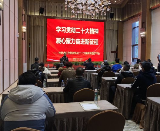 为贯彻落实党的二十大精神,以自治区刘宁书记2022年11月7日主持召开的自治区打造桂林世界级旅游城市工作领导小组会议精神为契机,加快推进我市红色旅游的发展步伐,为我市建设世界级旅游城市贡献协会力量。