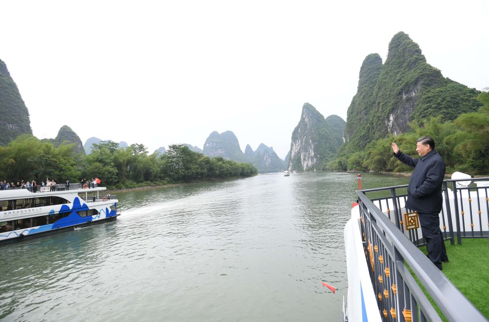 25日上午,习近平总书记来到位于广西桂林全州县才湾镇的红军长征湘江战役纪念园,向湘江战役红军烈士敬献花篮,参观红军长征湘江战役纪念馆,缅怀革命先烈、赓续共产党人精神血脉。随后,习近平来到才湾镇毛竹山村,考察推进乡村振兴、基层治理等情况。当天下午,习近平在漓江阳朔段实地了解漓江流域综合治理、生态保护等情况。