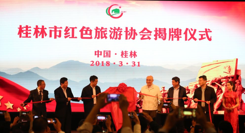 2018年3月31日上午,桂林市红色旅游协会揭牌仪式在桂林独秀峰·王城景区(靖江王城)国学堂隆重举行。协会名誉会长开国大将张云逸之子张光东将军、协会顾问开国上将李天佑之子李亚滨、老红军钟夫翔之子钟嘉鸣、开国中将韩伟之子韩京京、新四军副参谋长、烈士周子昆将军之子周林、中国佛教协会咨议委员会副主席释怀善,以及政府相关部门领导、红军后代代表、专家代表、顾问代表、各旅游企业代表、社会贤达、新闻媒体等100余人。本次揭牌仪式标志着广西红色旅游资源整合全面开启,协会将搭建起政府和桂林市红色旅游工作者、红色旅游经典景区(景点)沟通交流的纽带、桥梁,助力广西红色旅游发展。