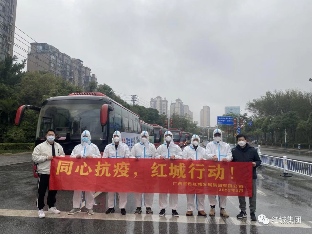 ▲红城集团鼎诚公交公司子公司百州公共交通运输公司安排6名驾驶员志愿者驾驶公路版公交车前往德保,接送次密切接触者到百色医院