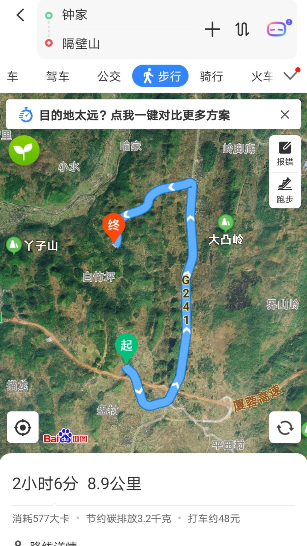 二、陈家背→钟家段:1、距离:1.6公里;2、需要时间:22分钟